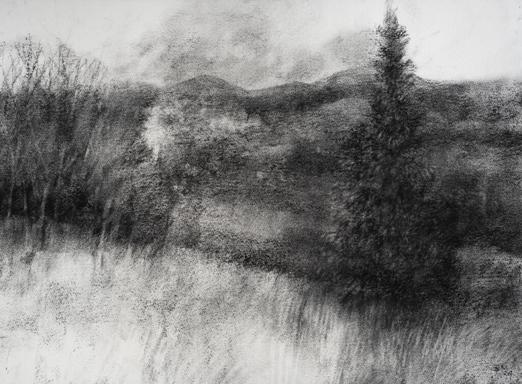 Bridget MacDonald 'Smoke and Spruce' charcoal on gessoed paper, 56cm x 76 cm £3250.00